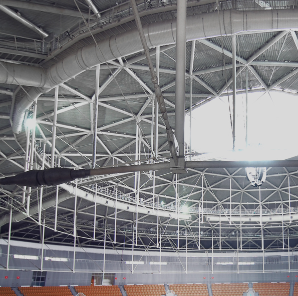 主要解决了大型活动屋盖在良性支承条件下开闭系统的设计、制作、安装与调试问题。以及钢结构与开闭系统的适应性和一体化设计与施工。金年会钢构是目前唯一一家承建全国所有大型开合屋盖体育场的集成服务商。